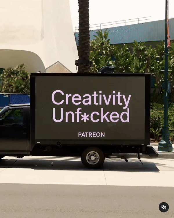 As apart of Patreon’s, “For Your Real Fans” campaign with mobile billboards declaring “Creativity Unf*cked” to celebrate creators’ freedom to pursue their passions authentically. The digital billboards drove for three days down the streets of downtown Anaheim during VidCon 2024 aa unique way to grab the attention of our core community.
